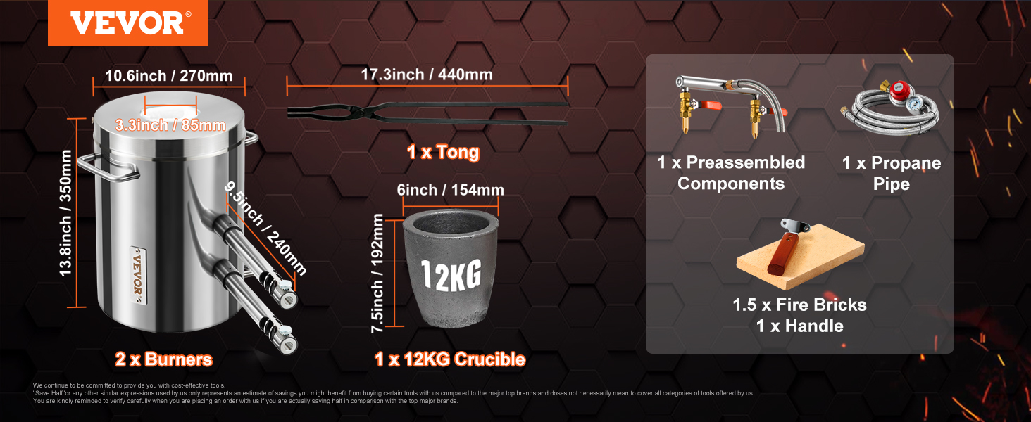 | Піч для плавлення пропану VEVOR 2 KG | |